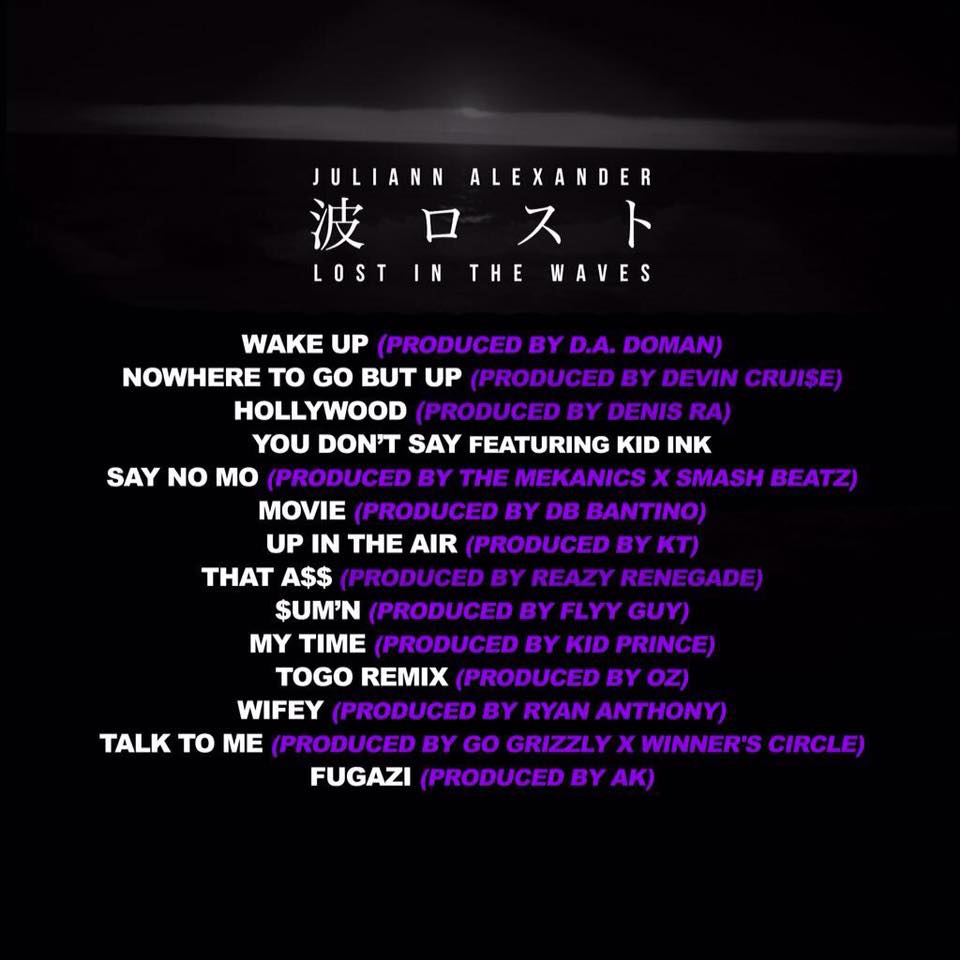 You may recognize this young talented rapper/movie actor/songwriter/producer Juliann Alexander from the group The Rangers, seen him in the movie School Dance, the young brother of Kid Ink and heard him featured on Batgang's mix-tape. After the break up with the Rangers, Juliann has been taking this solo thing so very seriously and doing it very well, he's been dropping records after records including dropping his first mix-tape Dying To Live Forever eight months ago. After dropping that project, he's been getting so many great feedback from fans who has been supporting Juliann since day one. Now he's back in the mixtape game of releasing his second project Lost in the Waves this past Thursday. This mixtape is getting lots of feedback from fans who are enjoying the project and sharing their favorite songs. All the songs sounds really good, my favorite tracks are You Don't Say ft Kid Ink, Wake Up, Nowhere To Go But Up, Say No Mo, My Time and Wifey. I do would like for everyone to download this mixtape, share it out to people who don't know Juliann is and tell them to listen to his music.